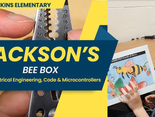 1st graders begin learning about circuits. Using electrical tape, single cell battery and a multi-color LED light, students created firefly bracelets. Students also created solar bees that are attached to a simple motor. Link to lesson.
