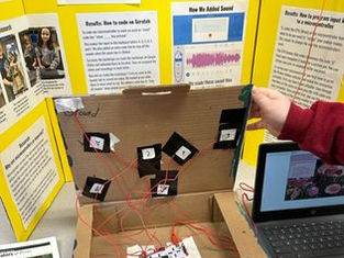 Physical computing projects are custom, electronic inventions that combine a computer, electrical wiring, a form of user input/output and code to make everything communicate. The possibilities are endless, but my students have made electronic museum displays, digital pianos, electronic "Operation" games, hot drink checkers, and more. Hardware used are Makey-Makeys, Microbits, and Arduinos. Click on the PLAY button on below thumbnails to watch the videos of students explaining their work.
